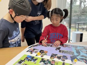 それぞれ好きな色のマジックを選んで、漢字とふりがなを分担して書きました♪