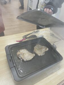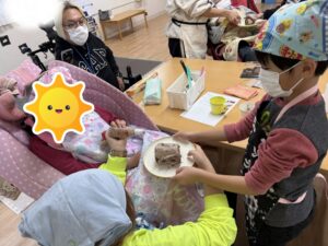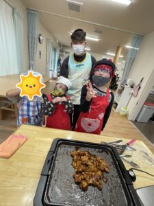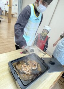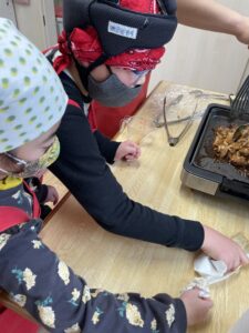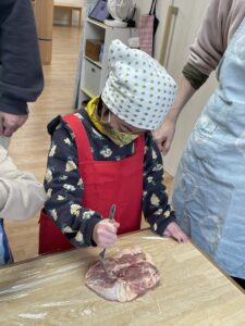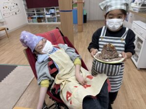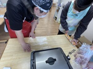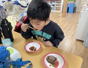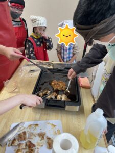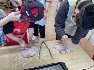 今日のスペシャルおやつはみんなで作るローストチキンとブッシュドノエルです♪