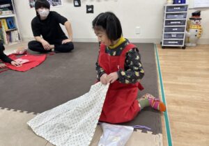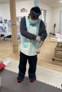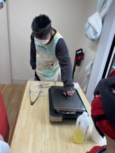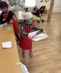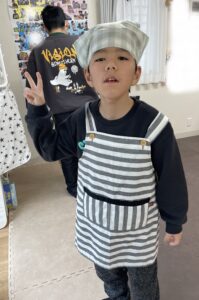 エプロン、三角巾、マスクの着け方も練習しました♪
