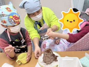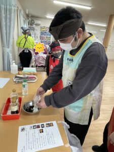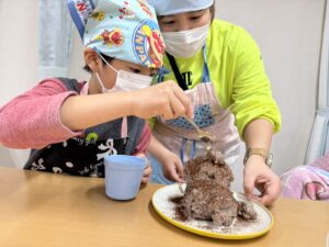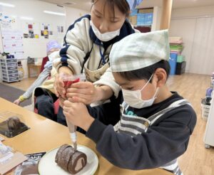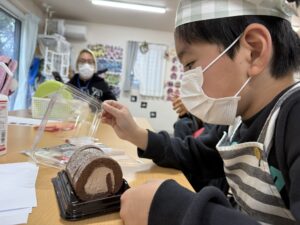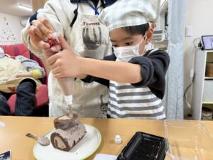 力を合わせて美味しいブッシュドノエルを作ろうね♪