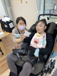 わたしはのりをつけるね!